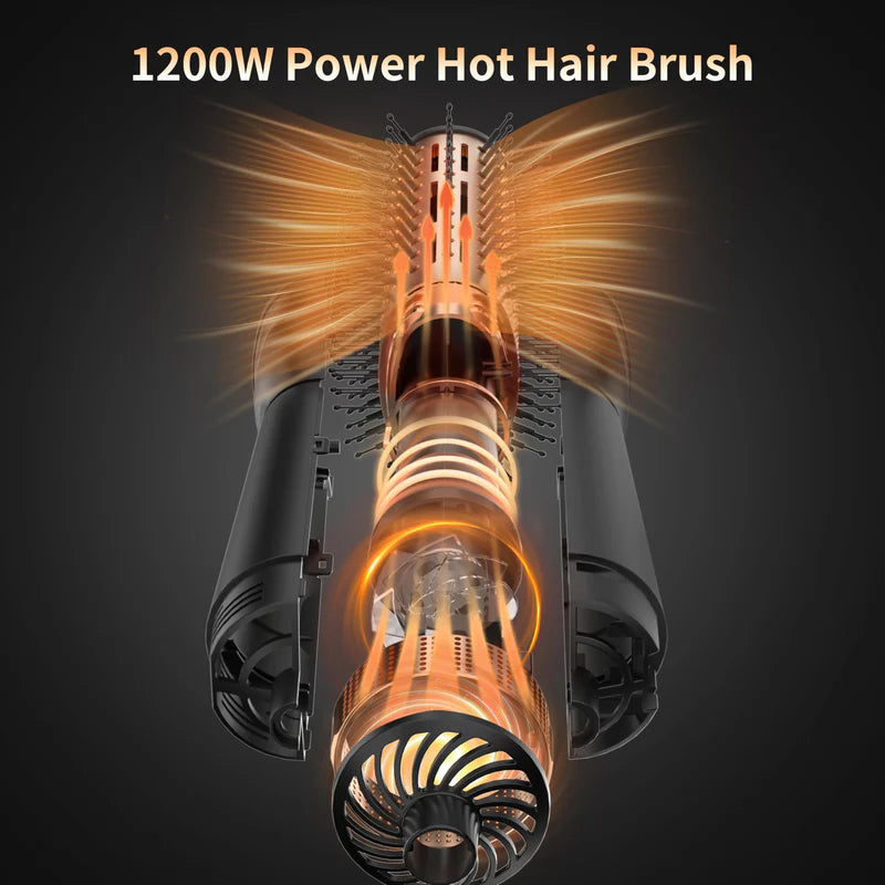 A Escova Secadora 3 em 1 seca, alisa e modela o cabelo ao mesmo tempo tudo isto sem danificar os fios.